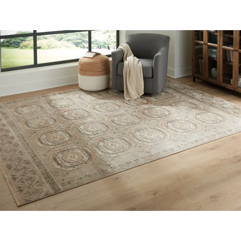 This area rug merges the best of old and new design motifs. A classic medallion pattern sets the scene for easy-elegant style. And with the rug's ultra-neutral and muted tones, it has a down-to-earth practicality that’s sure to please.