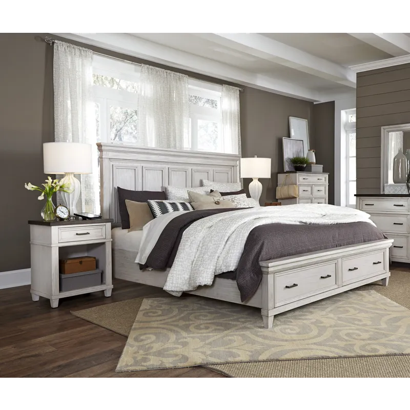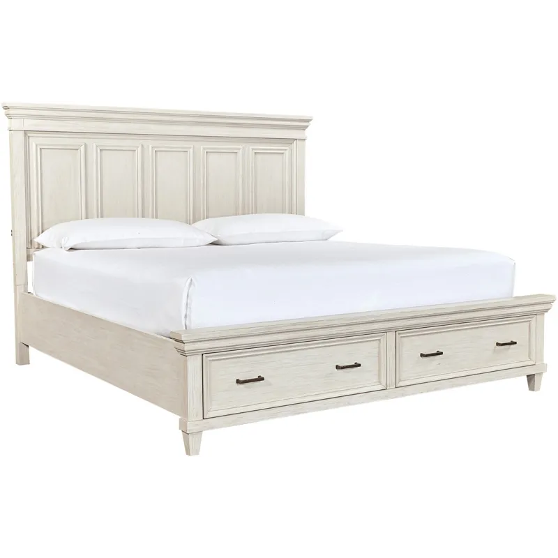 Caraway Queen Storage Panel Bed - Aged Ivory