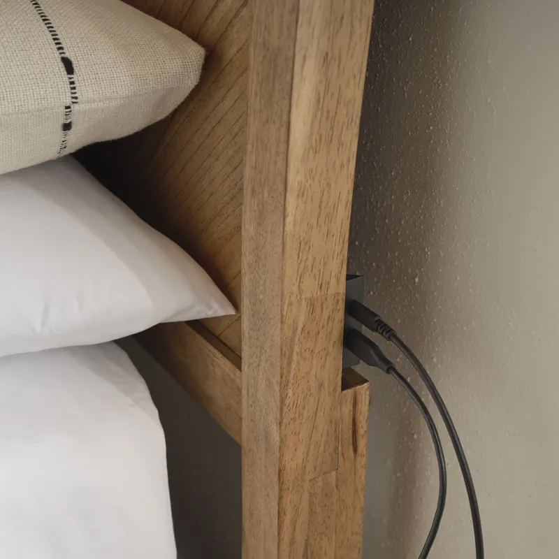 USB Headboard Charging Ports: USB ports are conveniently located on both sides of the headboard for easy reach. Keep your phone or tablet charged and ready for the busy day ahead.