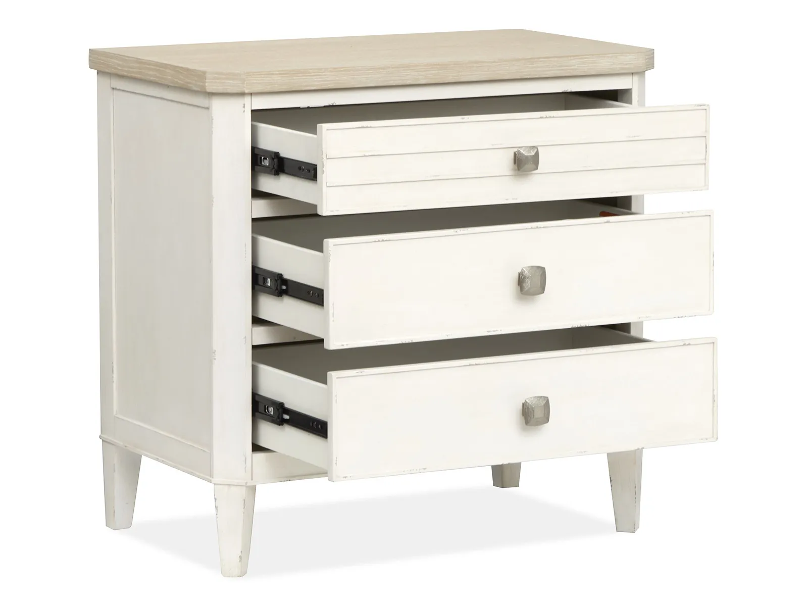 - 3 drawers with felt lined top drawer