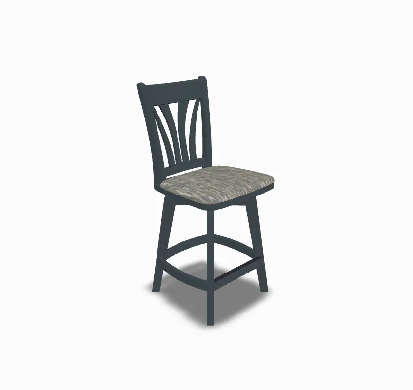 Arm Or Side: Side Base: 24" Swivel Barstool Species: Maple Seat Type: Fabric Seat Upholstery: 2405 Coastline Distressing: No Distressing Finish Option: PNT- Solid Paint Barstool Finish: 32P Rain Cloud