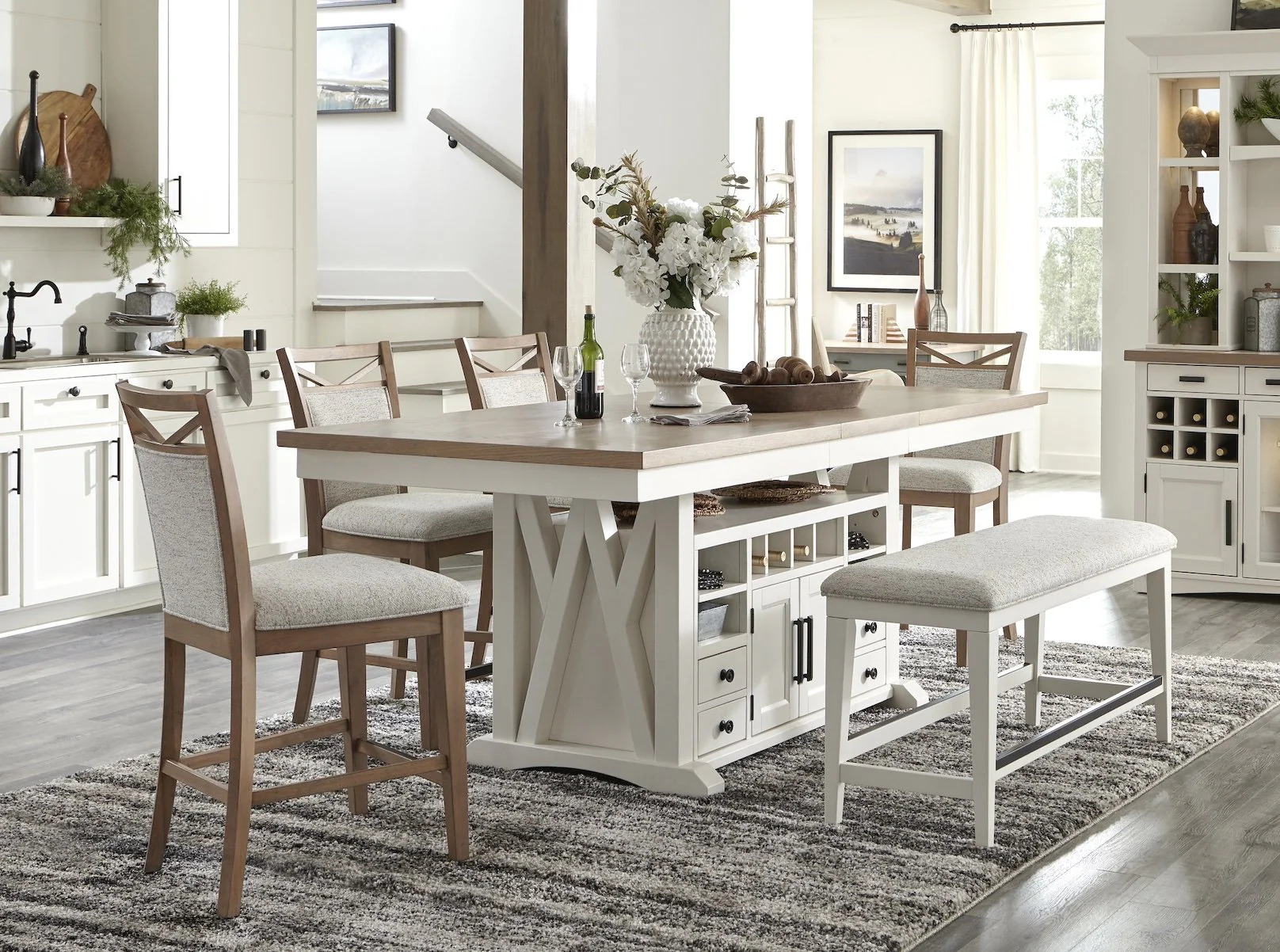 - Counter-height design adds modern functionality
