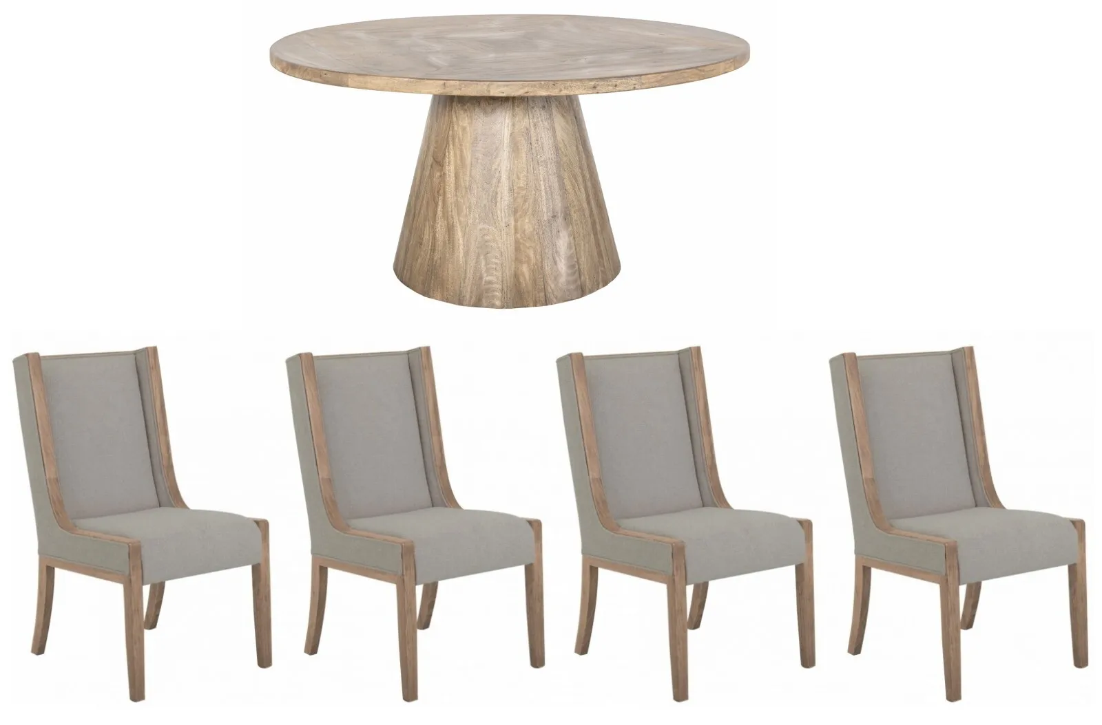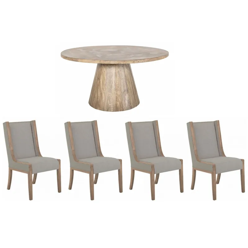 Our Balam collection is handcrafted from mango and teak wood, offering a simple yet stunning addition to your space with an organic, modern touch. The Balam table features a sturdy, conical wooden base that showcases the beautiful, natural grain of the wood, providing a solid foundation for the smooth, round tabletop. Elevate your dining experience by pairing this table with the stylish chairs available in the collection, creating an inviting atmosphere in your home.