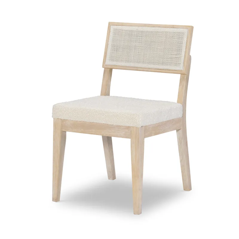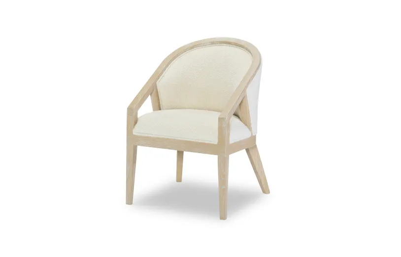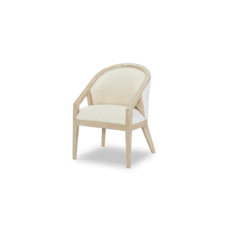 Capture a modern resort feeling with the Biscayne Collection by Legacy Classic, Modern. A light and airy blonde Malabar finish is paired with faux woven raffia, alabaster doors, and boucle fabrics for a serene and stylish setting.
