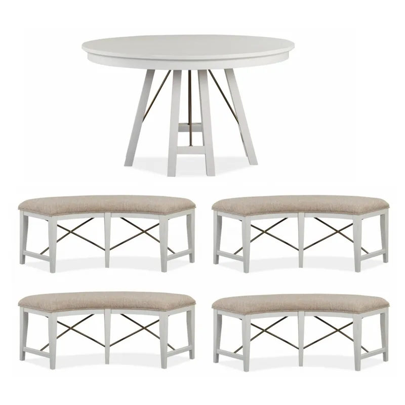 Heron Cove Wood 52" Round Dining Table (D4400-27): 52 x 52 x 30 - Boasting timeless design influences and impeccably crafted functionality, the dining furniture in Heron Cove is second to none. Its fresh cottage-inspired look is equally suited for casual dinners or entertaining a crowd. You’ll love the easygoing design versatility of Heron Cove’s Chalk White finish and Aged Pewter accents. This classic collection offers raised beaded trim, framed-panel elements and straight, shaker-inspired legs. Go bright or neutral with your table linens, they all work wonderfully with this versatile collection that can be styled to feel coastal, cottage, farmhouse or traditional.