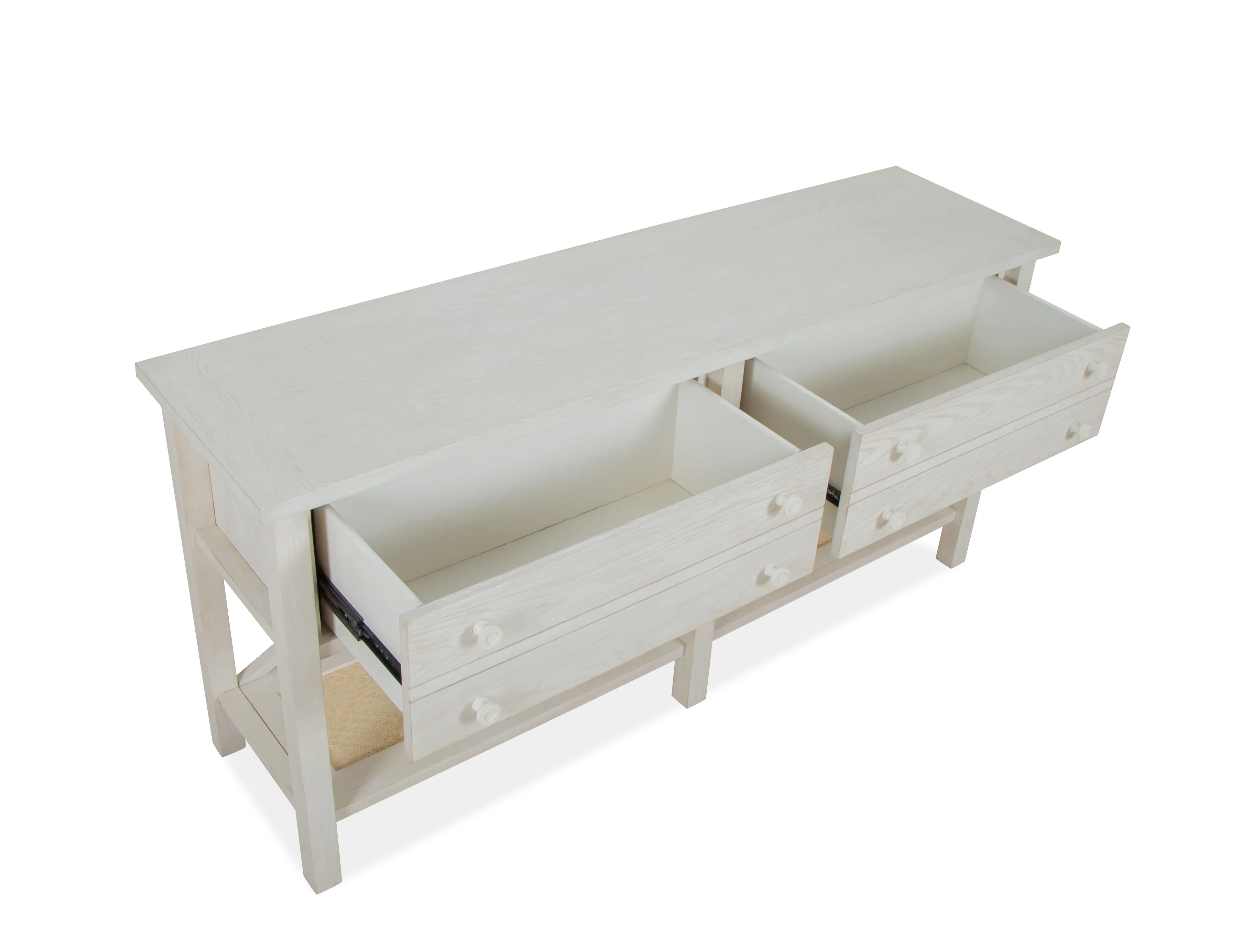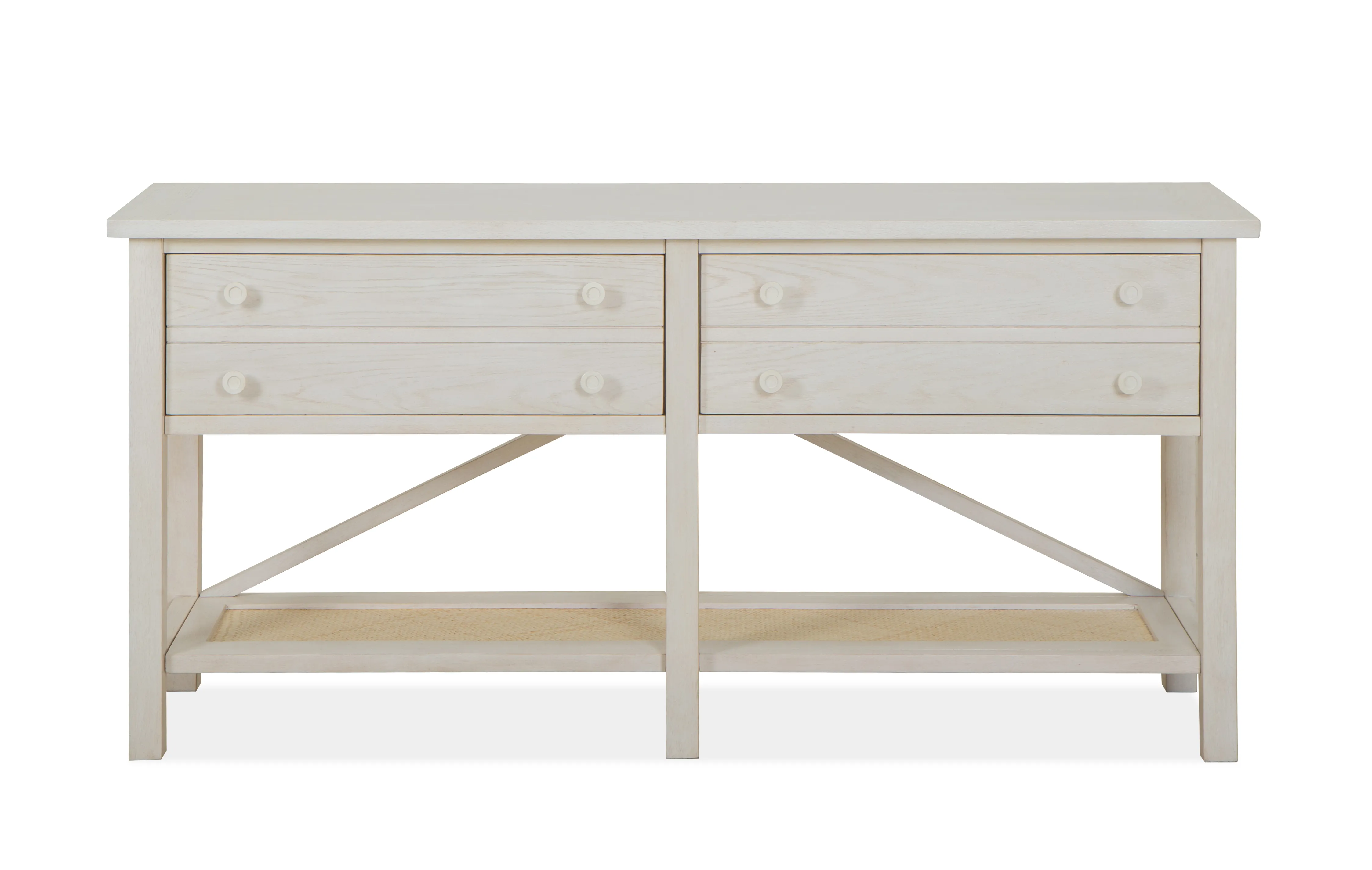 Beloved by everyone who sees it, the Ellison collection is light, relaxed and destined to become a topic of conversation. Its streamlined silhouettes are open and pleasing to the eye and feature woven design elements that add an additional layer of texture and visual interest. Finished in a soft Antique White over cathedral oak veneers, Ellison conveys eye-catching design character.