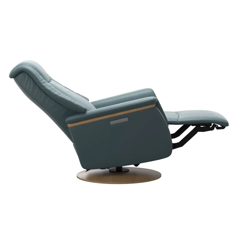 Stressless® Max has state-of-the-art technology underneath the supple, voluminous shapes. Soft and calming rocking motions offer instant comfort as you sit down. The Stressless Max relaxer has motorised adjustment of the headrest, backrest and footrest. The support can be adjusted individually to your needs – or at the touch of a button, automatically recline into a comfortable resting position. Â