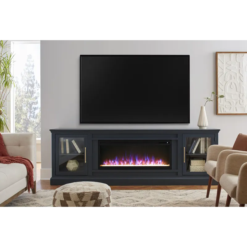 Iconic pieces in the Byron collection are a game-changer. The unique finishes with stunning hardware creates drama that will make your and your room feel regal yet comfortable. Designed, Assembled, & Finished with American Pride in Phoenix, Arizona, using Domestic and Imported Materials. Color Options: Enjoy multiple color effects for both the flame and ember bed. Cord Management: Engineered to allow cords to pass through the furniture to an outlet. Eco-friendly: Energy efficient fireplace does not emit any emissions or other hazardous byproducts. Ember Bed Choices: Choose between interchangeable logs or translucent rocks. Flame effect: Can be operated with or without heat. Remote Control: Includes an easy to use multifunction remote control. Temperature Control: Set the temperature between 72F to 82F to fit your comfort. Timer Settings: Set to automatically shutoff from 30 minutes to 9 hours. Zone Heating: Provides supplemental heat to your favorite rooms and spaces.